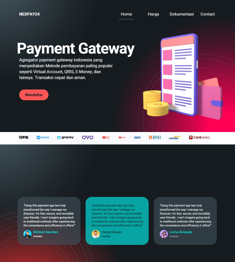 Integrasikan payment gateway website mu dengan Nexpay24, memiliki dokumentasi API yang mudah & Paydisini memiliki tim IT yang berpengalaman.